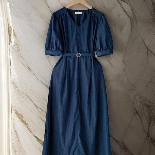 [다잇템_패션]여성 롱 핀턱 반소매 V넥 벨티드 원피스