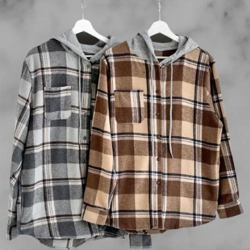[옷자락] 남녀 커플 패션 클래식 체크 디자인 후드 셔츠