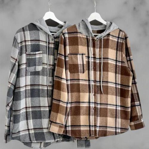 [옷자락]남녀 커플 패션 클래식 체크 디자인 후드 셔츠