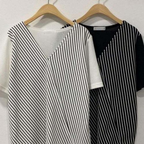 [셀럽하우스]여성큰옷 GGXD5878 빅사이즈 줄지 빅사이즈미시옷 반팔티 브이