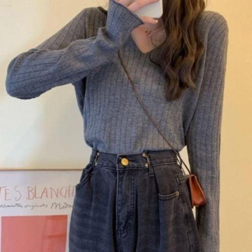 [모노무드]LMO 여자 롱슬리브 브이라인 추절기춘절기 베이직 레이디 뜨개탑 반팔티 시그니처