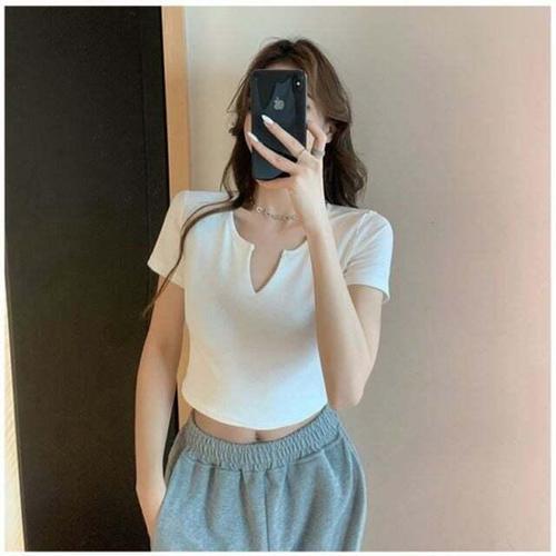 화이트 브이트임반팔티 그레이 블랙 반팔티 크롭 브이 WD7DD7E