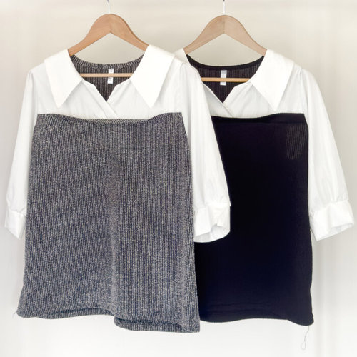 나야홍 / 위쉬몰 GO 오픈카라배색탑블라우스(V136H508) 빅사이