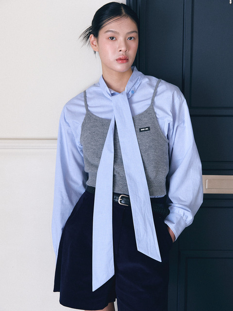 [샵아라] Mandarin Tie point check blouse_Light blue