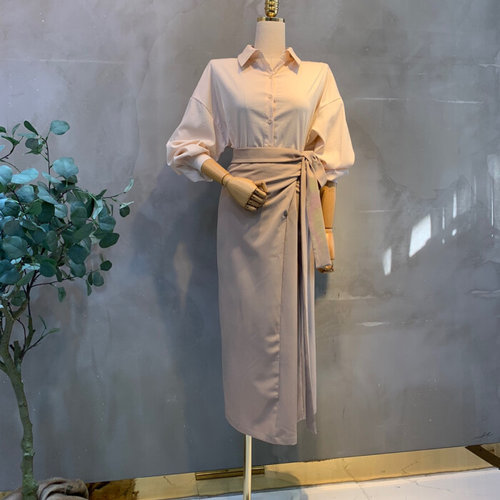 씨샵인더룸 / 봄봄 셔츠 허리끈 랩 롱 스커트 세트 one color C