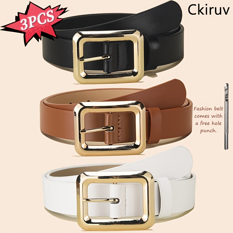 TEMU 3개 패션 여성 벨트 세트, 고급 소프트 PU 소재 사용, 정교한 사각 합금 버클 장식, 간편하고 우아함, 쉬운 사이즈 조절을 위한 특별한 펀치 포함, 다용도 여성용 장식 벨트, 답답함 없음