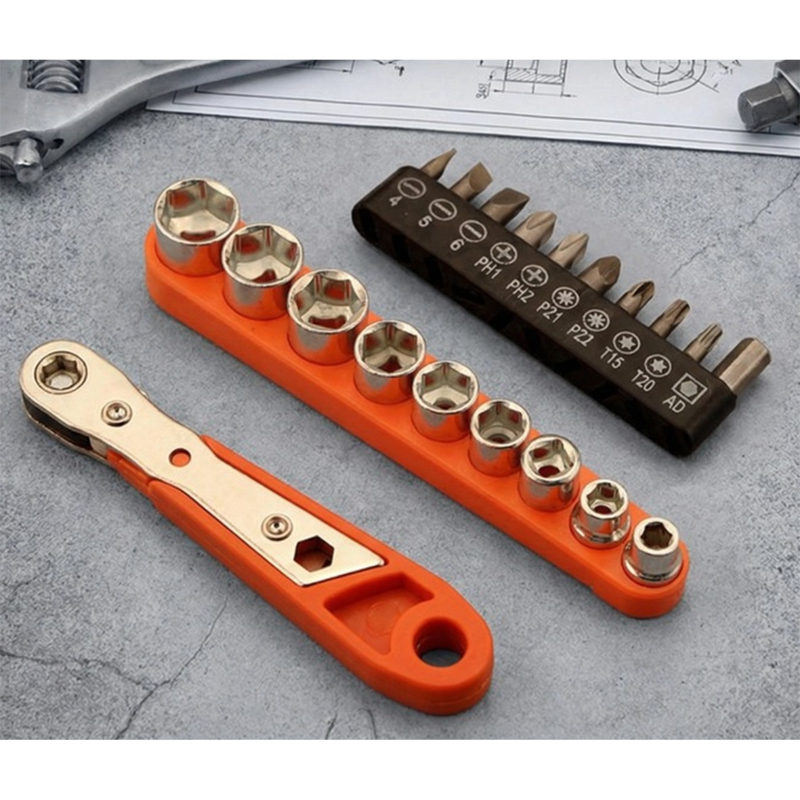 TEMU 다용도 양방향 노동력 절약 라쳇 스크루드라이버 세트, 스틸 다종 스펙 소켓 스크루드라이버, 좁은 공간 유지 보수에 적합, 미끄럼 방지 그립, 수동 작동, 곡선 렌치, 직각 디자인