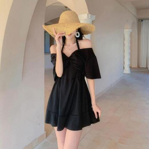 [에이치플러스몰]앤 인기 은창)블랙 화이트 홀터넥 감성 원피스 수영복