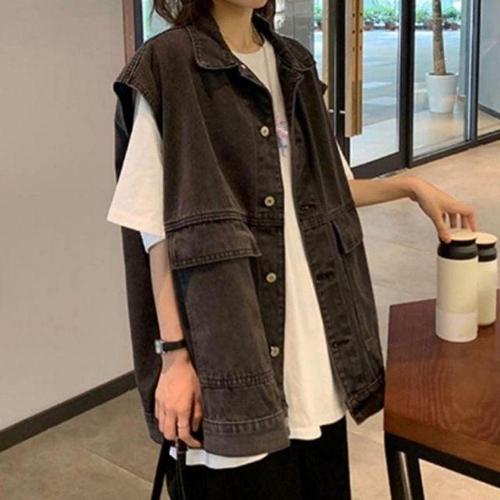 여자 캐주얼 패션 청코디 빈티지 오버핏 블랙진조끼 W91E21B