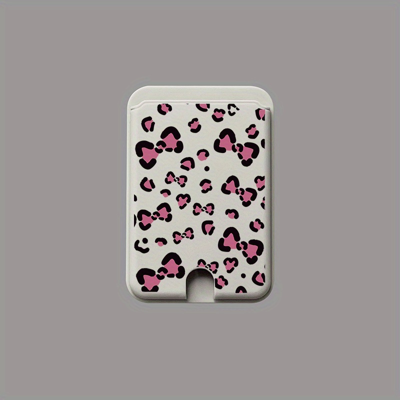 TEMU 핑크 프린트 리본 패턴 강력 자석 카드 홀더, 부드러운 터치감, 스타일리시하고 내구성 강한 PC 소재. 삼성, 아이폰 및 기타 자석 휴대폰/케이스 호환. 은행카드, 신용카드, 멤버십 카드 1~4장 수납 가능