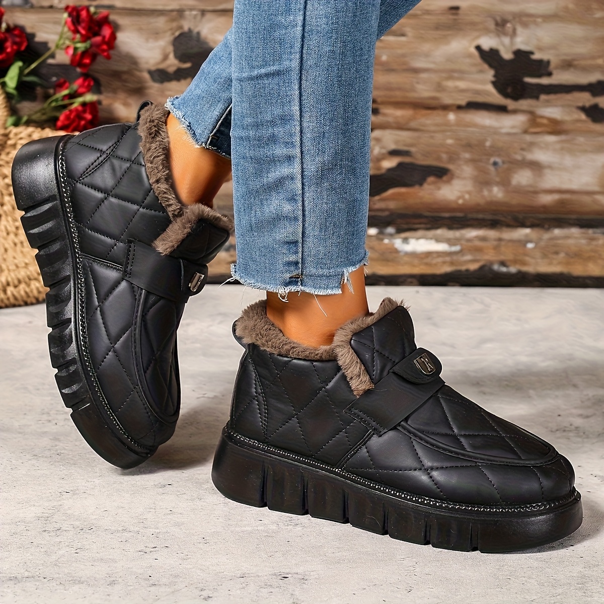 TEMU 여성 플러시 입구 두꺼운 밑창 캐주얼 신발 - 따뜻하고 귀여운 겨울 신발, 둥근 토, 편안하고 스타일리시한 두꺼운 고무 밑창, 데일리 홈웨어 및 야외 활동에 적합, 겨울 신발 | 둥근 토 디자인 | 플러시 안감