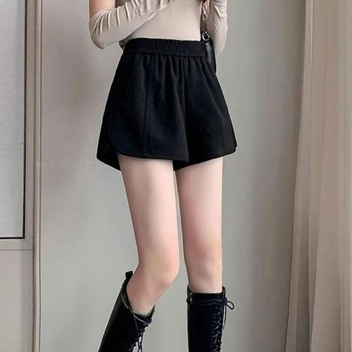여성용 가을 겨울 빅사이즈 하이웨스트 5부 팬츠 밴딩 A라인 와이드 모직 반바지