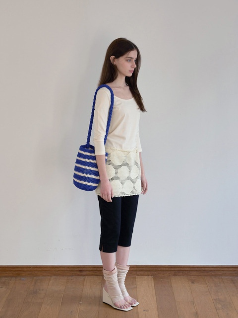 [슬로우슬로울리] 모로칸 핸드메이드 크로셰 스트라이프 버킷백 _ 블루