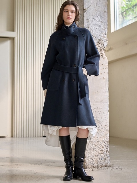 [미테] 하이넥 더블 핸드메이드 코트_블루쉬그린