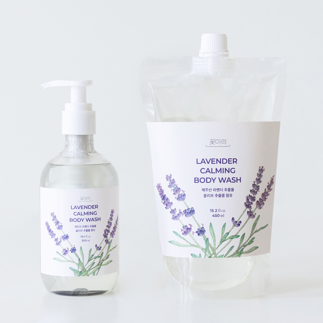 꽃마리 라벤더 카밍 비건 바디워시 300ml+리필 450ml 제주 허브 저자극 온가족 사워