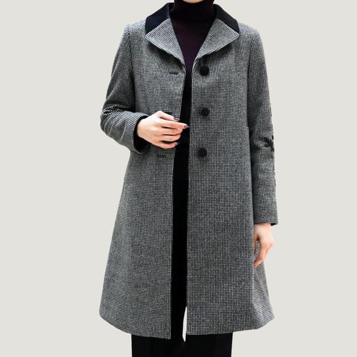 [비꼴리끄(여성)]벨벳카라 울 체크 오버핏 자켓 B224WJ2220