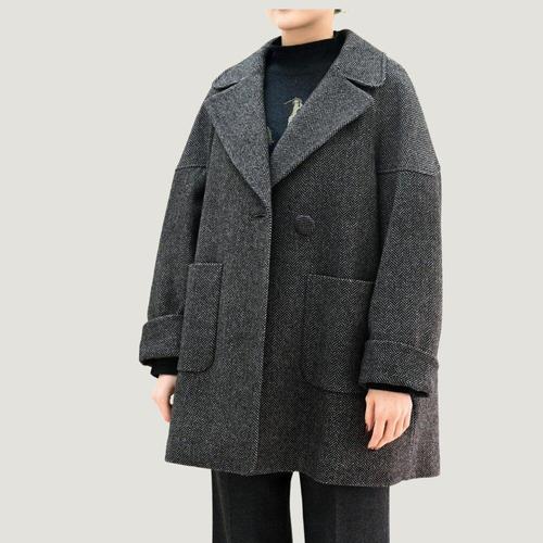 [비꼴리끄]울 헤링본 라그랑 하프코트 B254WH2060