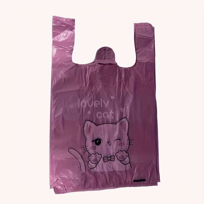 TEMU 100매 두꺼운 대형 쓰레기봉투, 핑크 고양이 프린트 휴대용 쓰레기봉투, 조끼형 쓰레기봉투 - 고밀도 폴리에틸렌, 다목적 일회용 보관봉투, 주방, 욕실, 침실, 거실, 화장실, 사무실, 학교에 적합|테무쇼핑|음식물쓰레기통