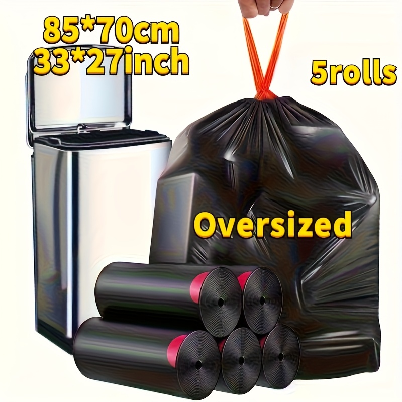 TEMU 2/5롤 초대형 35갤런 고강도 검정색 쓰레기 봉투 - 85cm x 70cm/33인치 x 27인치, 내구성 좋은 폴리에틸렌 소재, 가정, 호텔 및 슈퍼마켓용 다용도 청소 용품, 추수감사절 & 크리스마스, 가정용 쓰레기 봉투