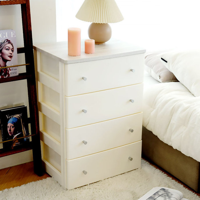 보노하우스 [비밀특가] 국내생산 마리 실버핸들 우드상판 서랍장 4단