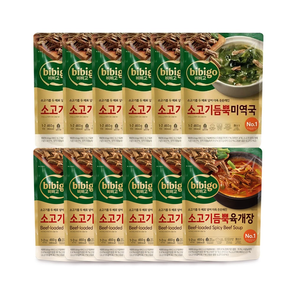 비비고 소고기 듬뿍 미역국 460g x6개+소고기 듬뿍 육개장 460g x6개