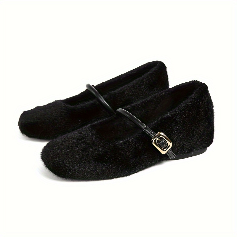 TEMU 우아한 겨울 메리 제인 플랫 여성용 - 단색 웜 플러시 안감 편안한 스트랩 달린 슈즈, 라운드 토, 패브릭 어퍼, TPU 솔