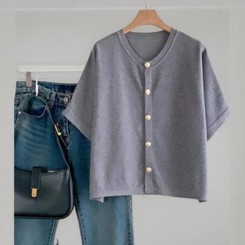 |CDJ6570|여성 비스코스 골드 버튼 나그랑 반팔 가디건