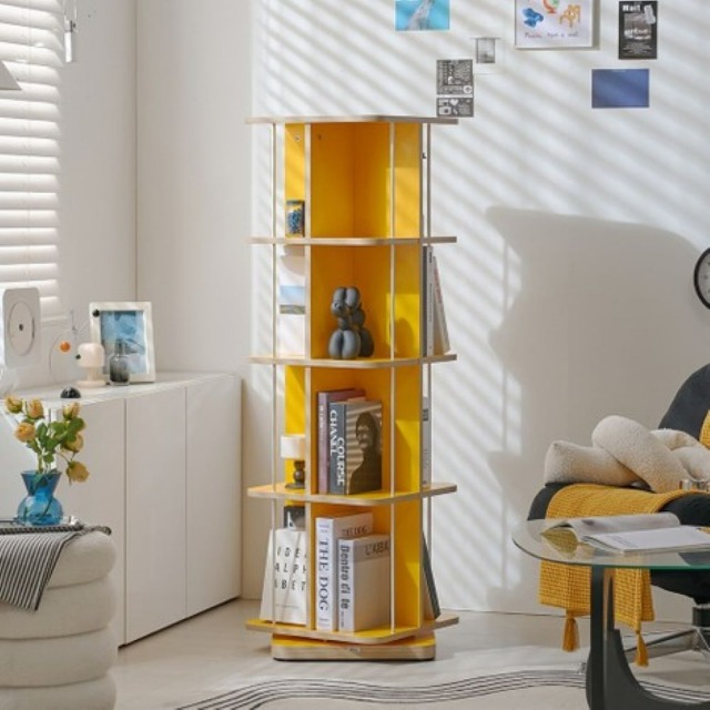 360도 회전 책장 대용량 책장 원목 아이방 사무실 거실, 5단, 원목