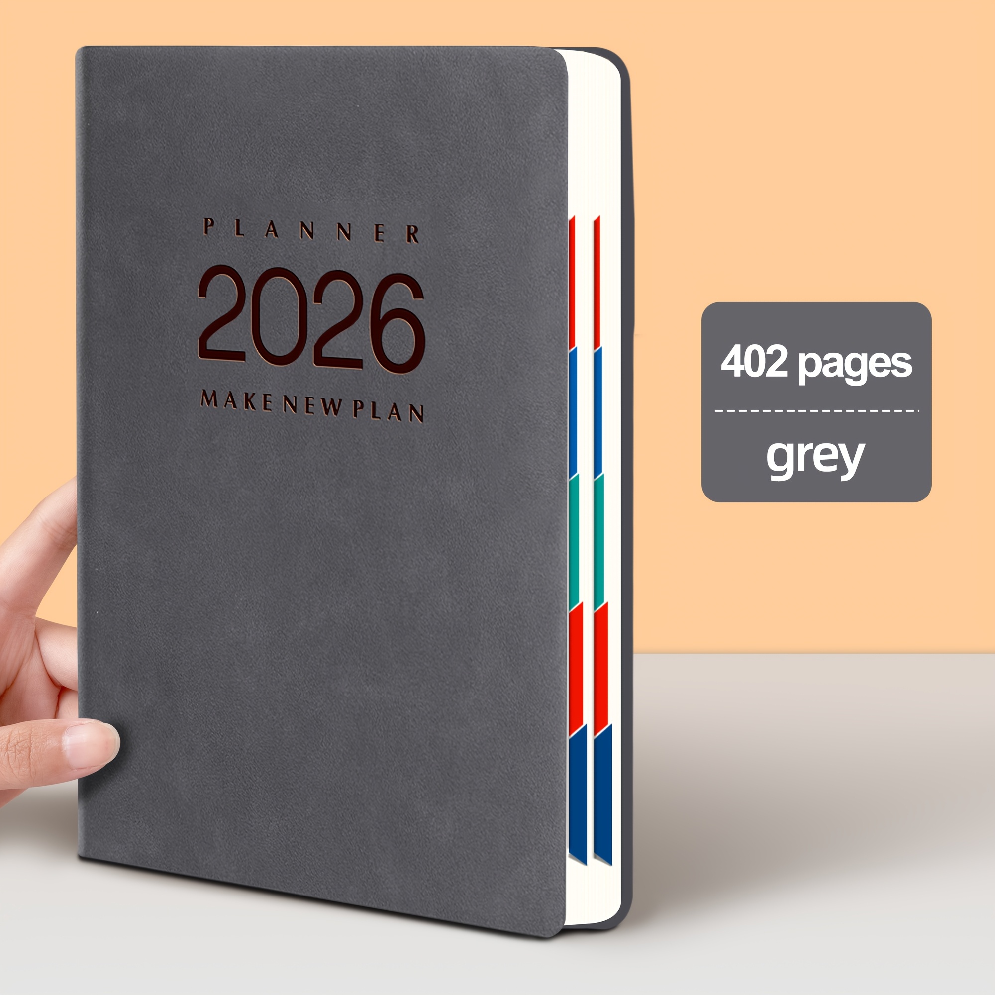 TEMU 2026 인조 가죽 일일 플래너 - 시간 관리 및 자기 훈련 다이어리, 365일 사무실 및 학교 일정, 부드러운 커버, 내구성 있는 합성 인조 가죽, 월별 및 일일 보기, 영어, 전문 레이아웃, 소프트 커버 노트북