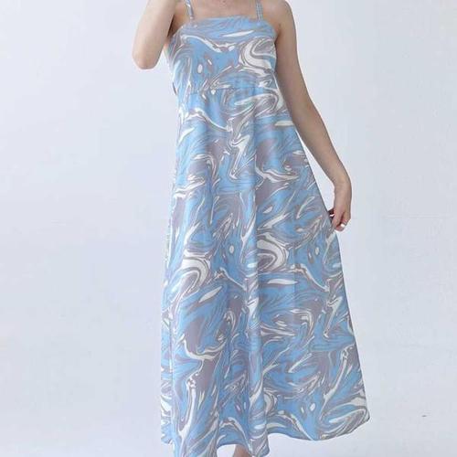 [오너클랜]인기상품 여성 쉬폰 끈나시 밴딩 플라워 비치 A라인 롱 원피스 [WC722AC_250919]