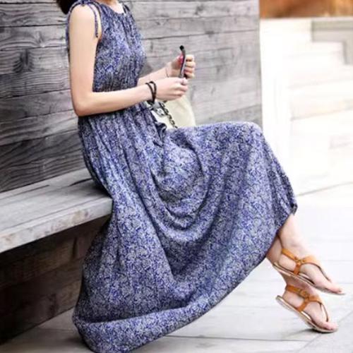 [오너클랜]인기상품 여성 쉬폰 끈나시 밴딩 플라워 비치 A라인 롱 원피스 [WC722AC_250919]