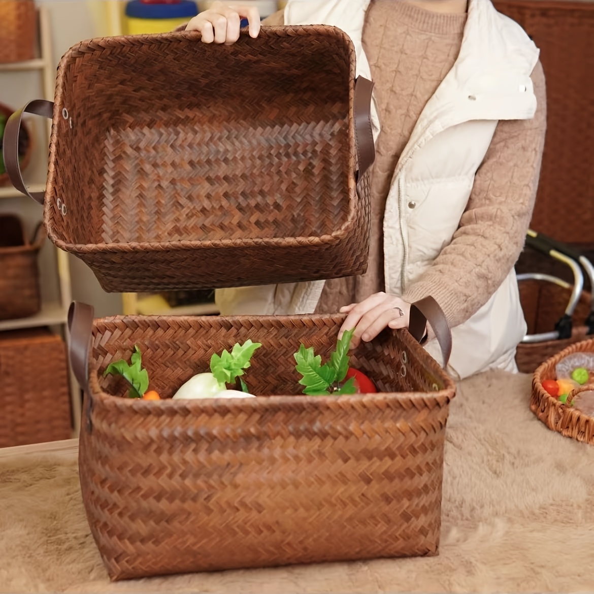 TEMU 두 개의 손으로 짠 세탁 바구니 세트 - 내구성 있는 플라스틱, 예술적인 디자인, 주방, 욕실, 침실, 거실에 적합한 수납 용품 - 다기능 정리함, 선반, 세탁실, 캐비닛 등에 놓기에 완벽한 선반 바구니