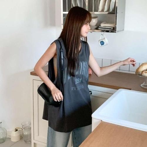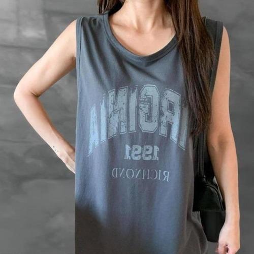 [다잇템][다잇템] 여성 빅사이즈 필기체 코튼 힙무드 슬리브리스 티셔츠_21959712_588872