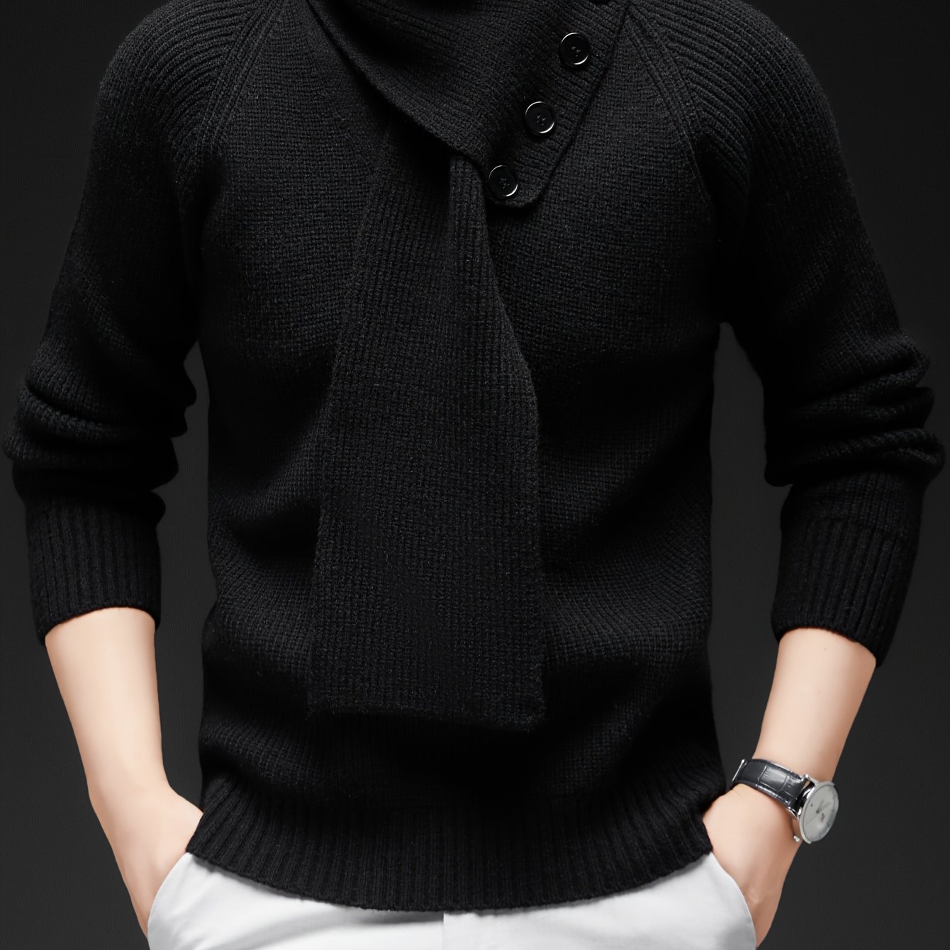 TEMU 남성 스웨터, V넥 패션 트렌디 한국 스타일 니트웨어, 탈부착 가능한 버튼 장식 스카프 칼라, 가을/겨울용 신상 긴팔 탑 8037|스카프