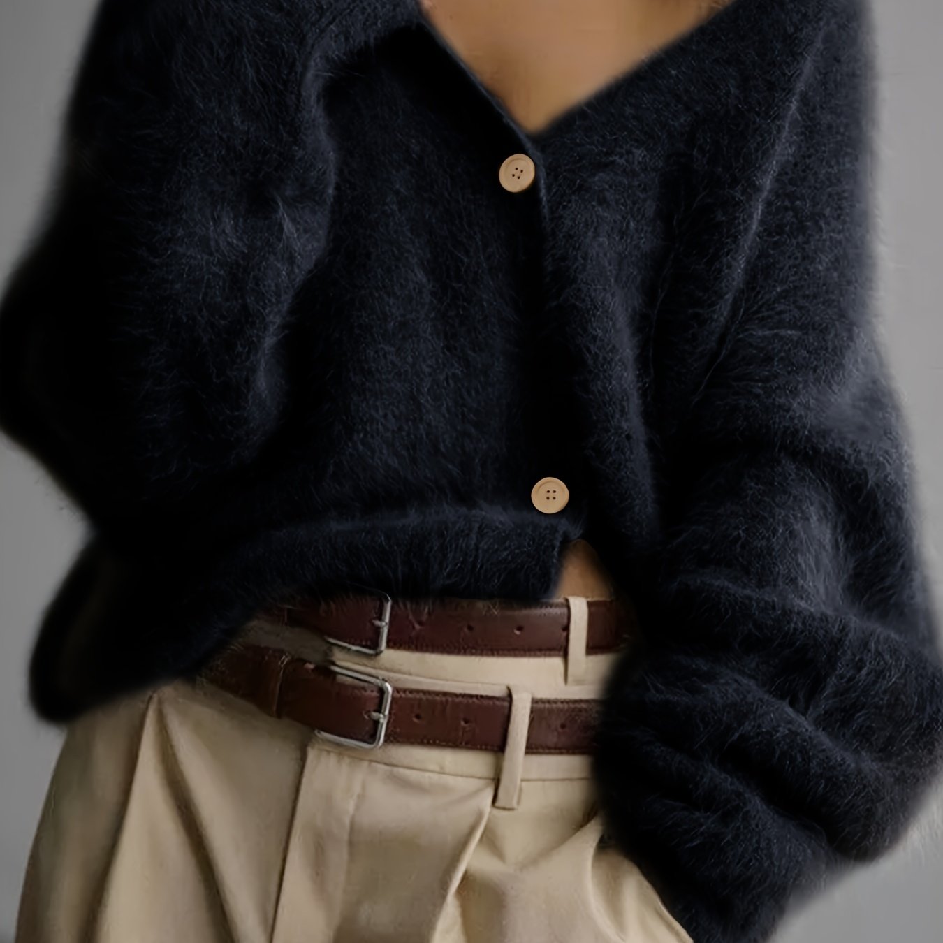 TEMU 2025 가을/겨울 게으른 V넥 싱글 버튼 스웨터 코트 페이크 밍크 소프트 긴팔 여성용 가디건