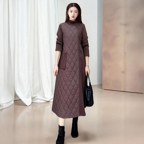 (55~88)하프넥누빔 퀼팅원피스 캐주얼원피스 니트원피스 엄마옷 기모원피스 하객룩