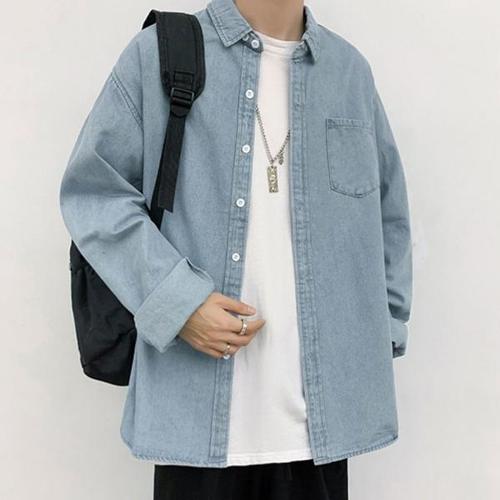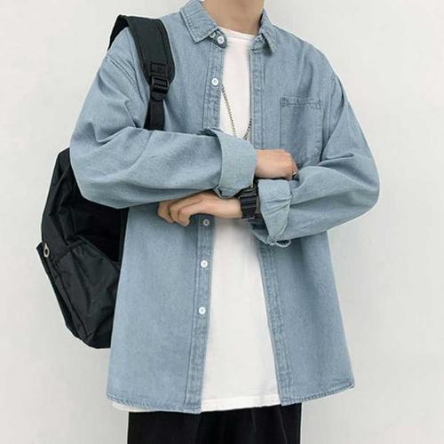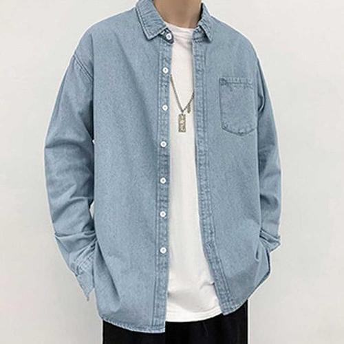 [셀러허브_여성트랜드패션]긴팔 남방빅 남성 청남방 사이즈 남자 와이셔츠 데님 가을