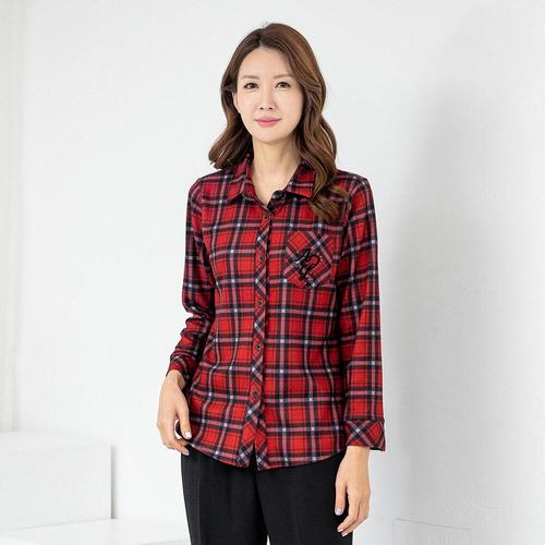 [모슬린]엄마옷 체크 겉기모 긴팔 셔츠 512FGH215 마담/중년여성/빅사이즈/50대/60대