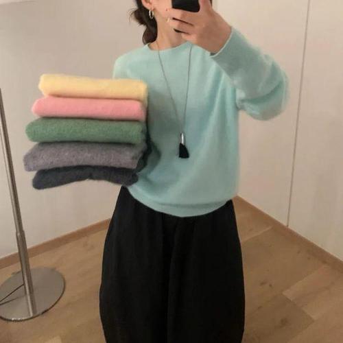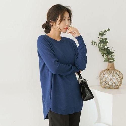 [유야]베이직 무지 나그랑 니트 긴팔티 -NT0170H- 빅사이즈 루즈핏 여성 가을 겨울