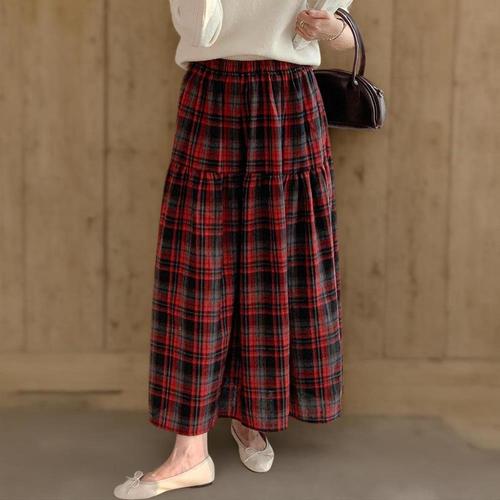 [옷자락]여성 겨울 출근용 체크 H라인 롱스커트 뒤트임 빅사이즈
