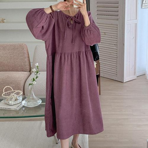 [옷자락]여자 골덴원피스 리본 퍼프 빅사이즈 임부복 롱원피스