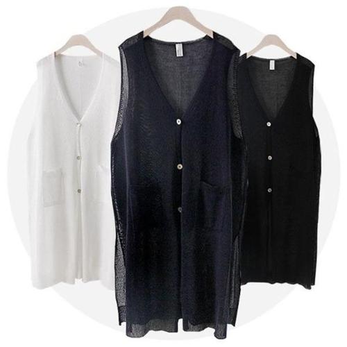 [엄지척]브이넥 망사 짜임 롱 조끼 빅사이즈 비치웨어 0321_19869665_667501