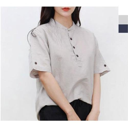 [오너클랜]인기상품 여자 헨리넥 린넨 반팔 셔츠 1P 빅사이즈 티셔츠 [W6A50D7_250917]