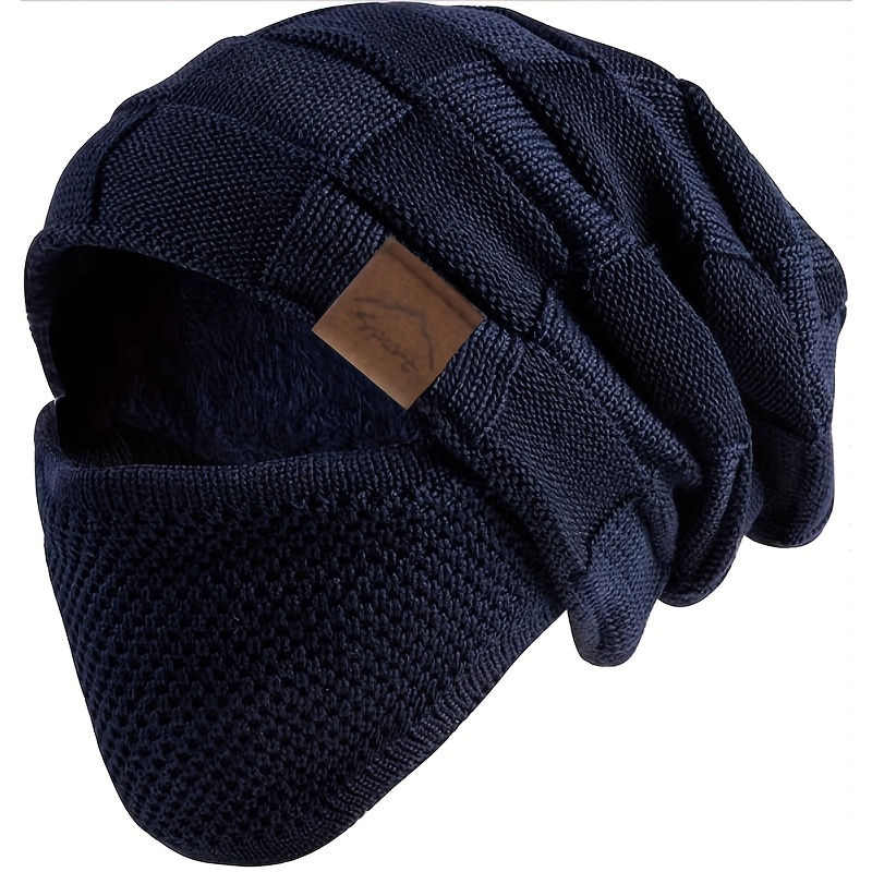 TEMU 남성용 보온 니트 비니 모자 - 조절 가능한 토글 클로저가 있는 플리스 안감 겨울 스컬 캡, 야외 스포츠 및 추운 날씨를 위한 가벼운 귀 보호, 네이비/블랙/화이트/그레이, 계절 헤드웨어, 리브 텍스처, 아늑한 머리 장식, 액티브 라이프스타일