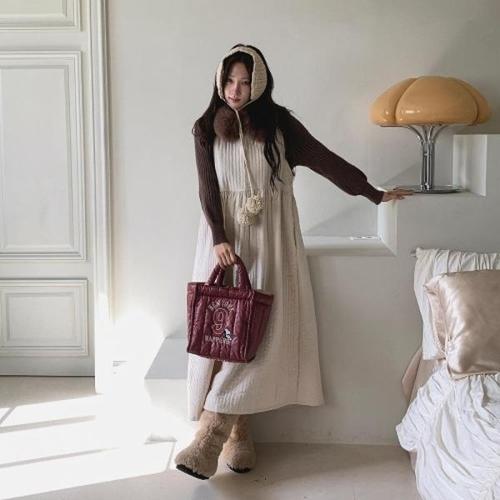 [다잇템]여성 롱 누빔 빅사이즈 슬리브리스 코디 드레스