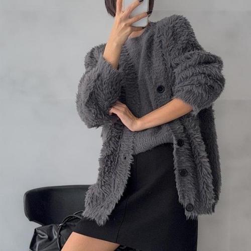 [다잇템][다잇템] 여자 빅사이즈 시어링 퍼가디건 털나시 브이 FW 세트_23867307_588872