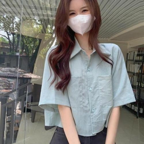 엘쏘 여성용 카라 슬림 라인 버튼 반팔 셔츠 남방