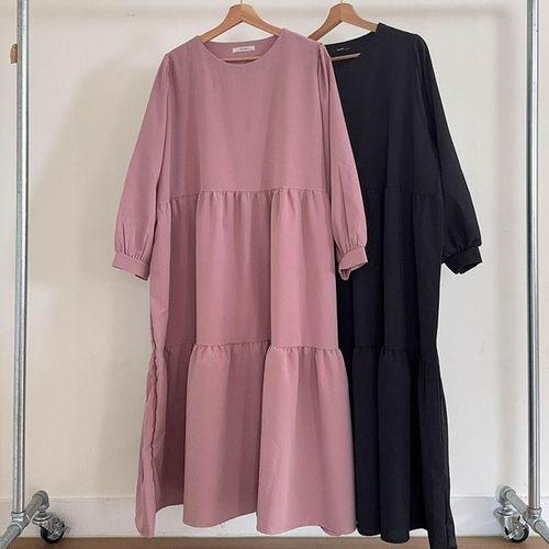 [옷자락] 여성 빅사이즈 캉캉 가을 임부용 분홍 롱드레스