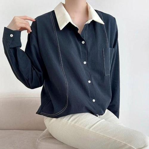 빅사이즈 포켓 롱셔츠 여성 오버핏 루즈 여자옷 박스 남방 기본 자켓형 데님 청남
