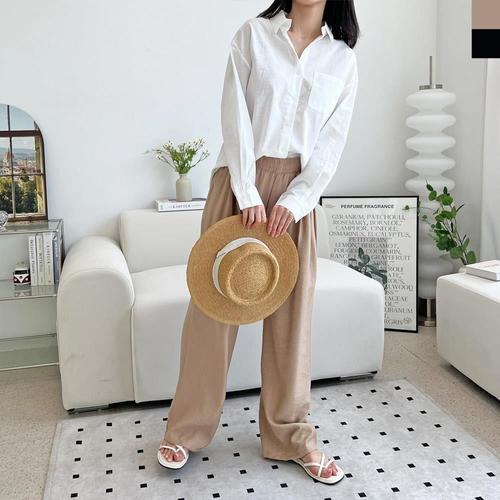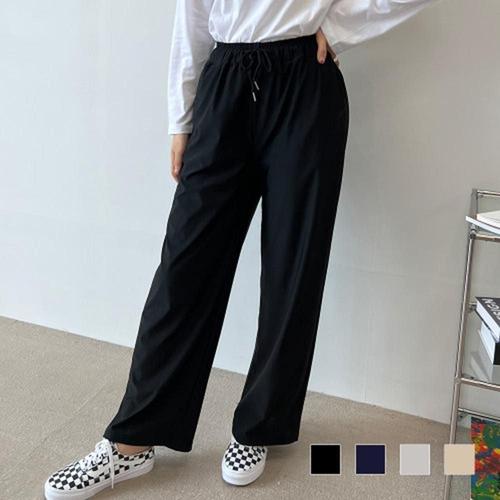 면 배기 신상 빅사이즈 코디 허리밴딩 여성바지 밴딩 WFJ4FIY